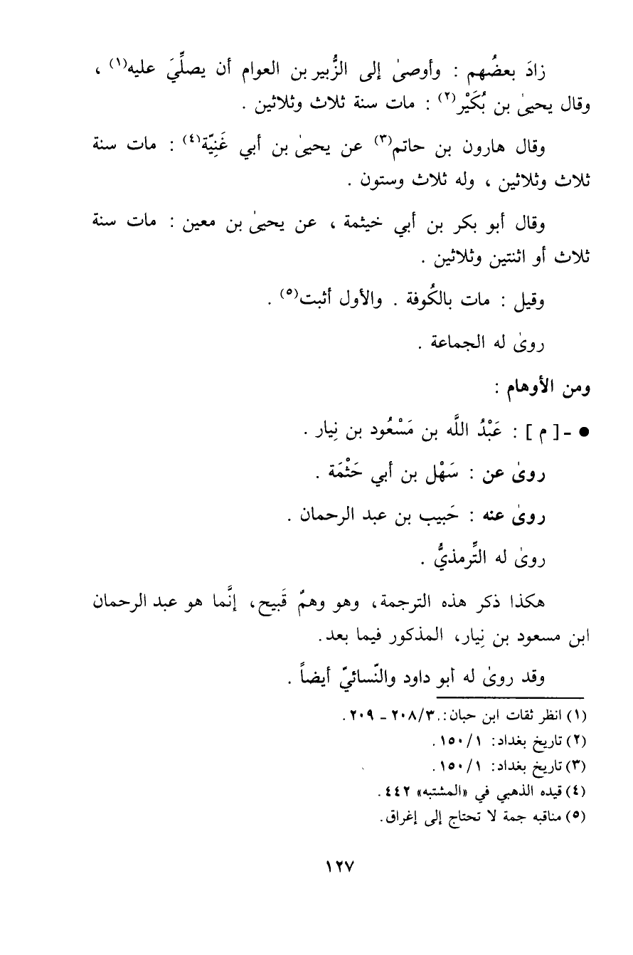 (1) انظر ثقات ابن حبان: 3 / 208 - 209.