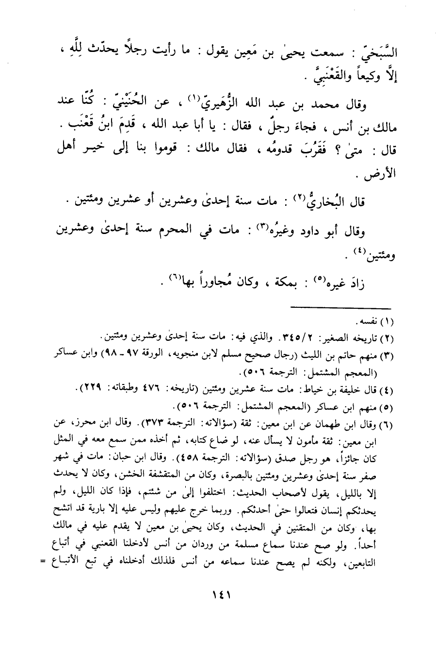 (2) تاريخه الصغير: 2 / 345. والذي فيه: مات سنة إحدى وعشرين ومئتين.