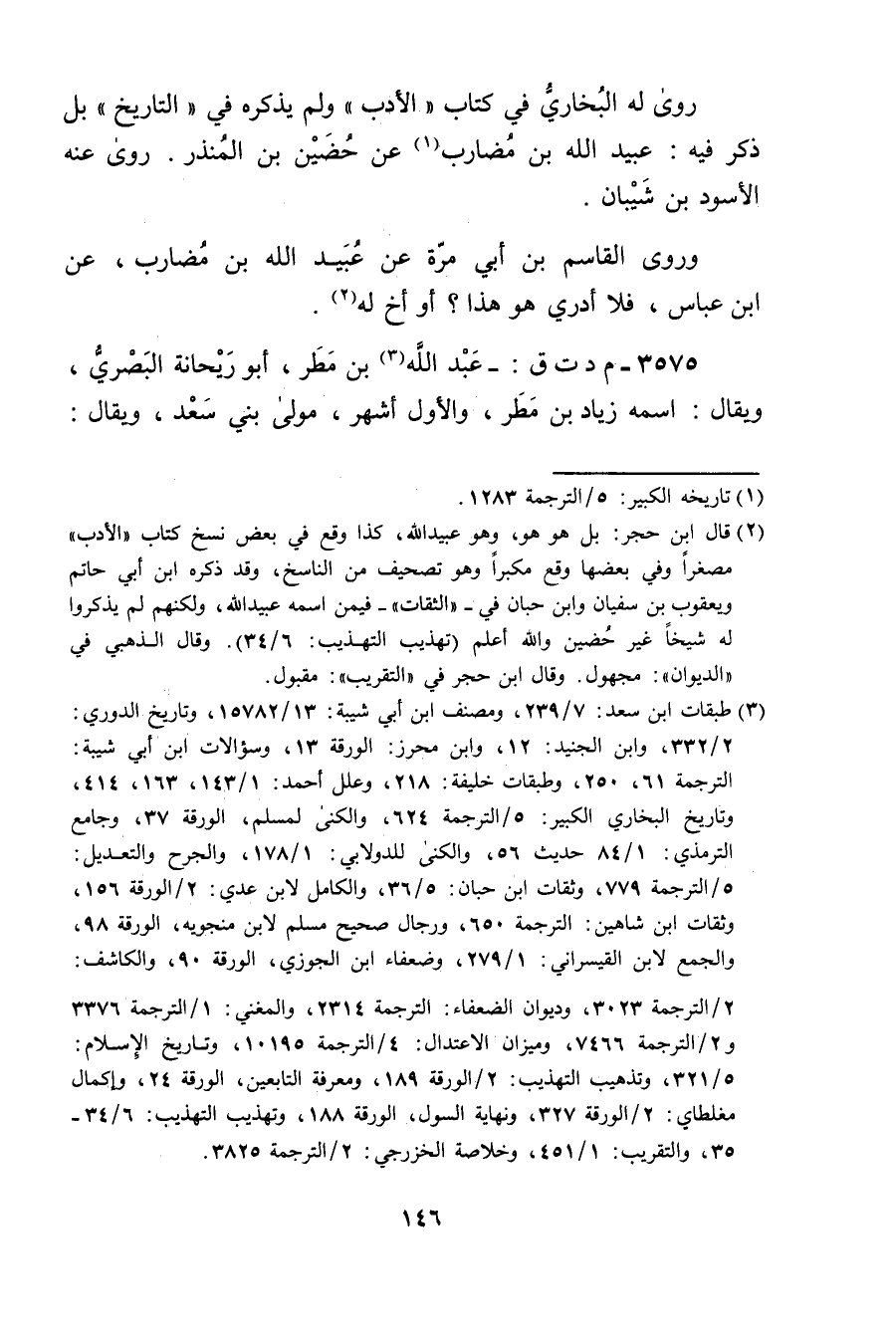 (2) قال ابن حجر: بل هو هو، وهو عُبَيد الله، كذا وقع في بعض نسخ كتاب"الأدب"مصغرا وفي بعضها وقع مكبرا وهو تصحيف من الناسخ، وقد ذكره ابن أَبي حاتم ويعقوب بن سفيان وابن حبان في - "الثقات" - فيمن اسمه عُبَيد الله، ولكنهم لم يذكروا له شيخا غير حضين والله أعلم (تهذيب التهذيب: 6 / 34) . قال الذهبي في "الديوان": مجهول. وَقَال ابن حجر في "التقريب": مقبول.