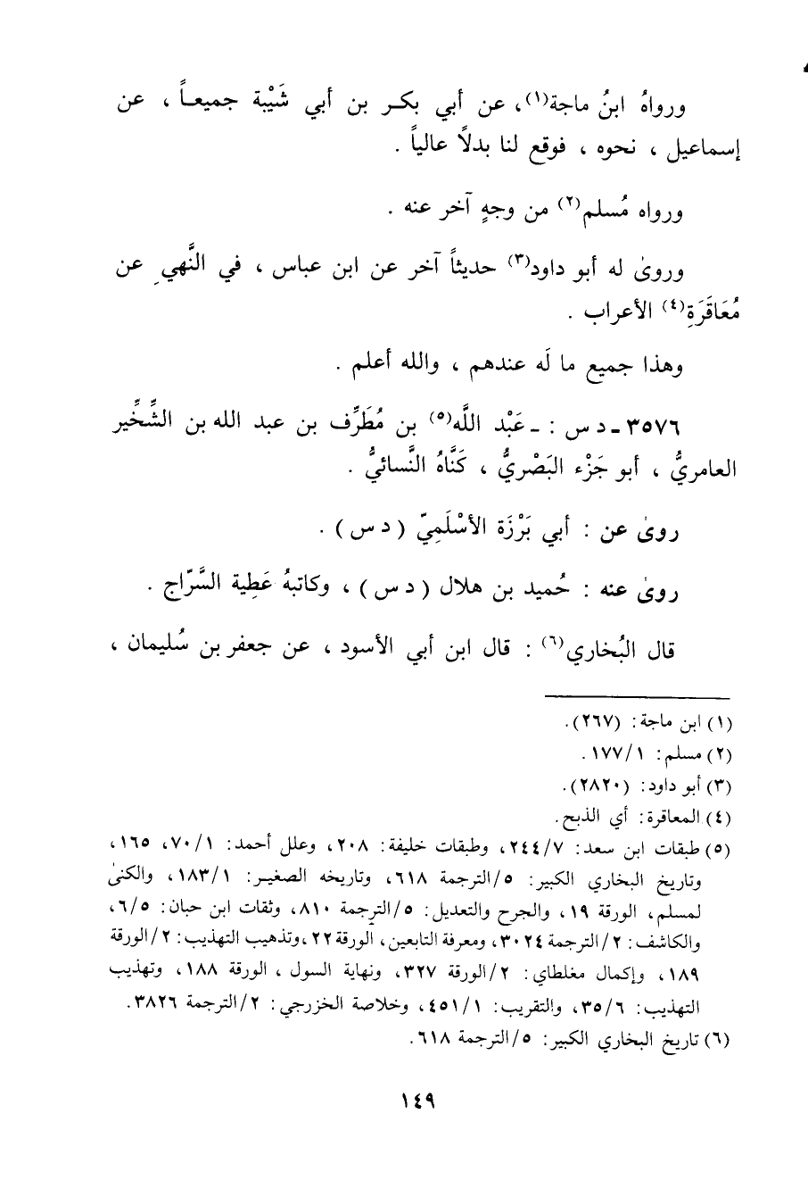 3576 - د س: - عَبد اللَّهِ بن مطرف بْن عَبد الله بْن الشخير العامري (5) ، أَبُو جزء البَصْرِيّ، كناه النَّسَائي.