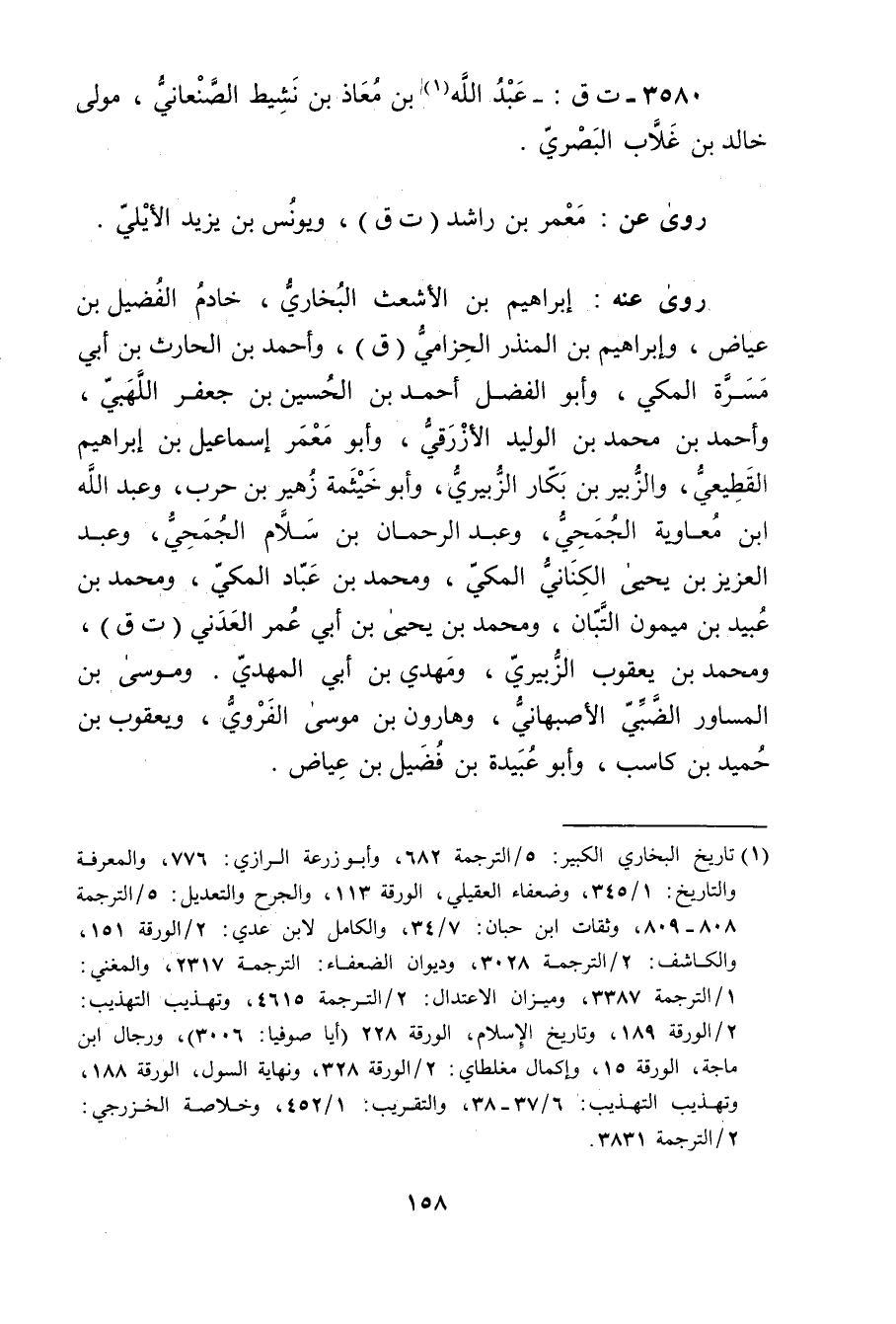 3580 - ت ق: - عَبد اللَّهِ بن مُعَاذ بن نشيط الصنعاني (1) ، مولى خالد بْن غلاب البَصْرِيّ.