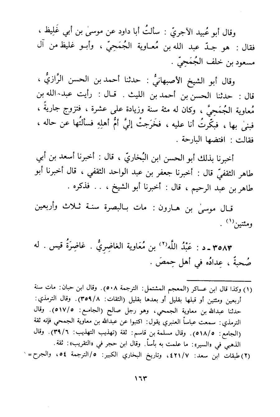 3583 - د: عَبد اللَّهِ بن معاوية الغاضري (2) . غاضرة قيس. لهُ صُحبَةٌ، عداده في أهل حمص.