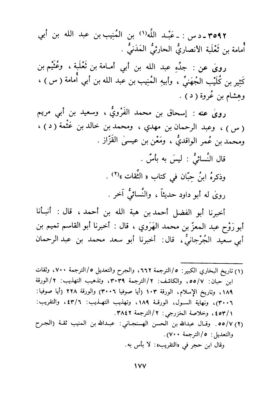 3592 - د س: - عَبد اللَّهِ بن المنيب بْن عَبد اللَّهِ بْن أَبي أمامة بن ثعلبة الأَنْصارِيّ الحارثي المدني (1) .