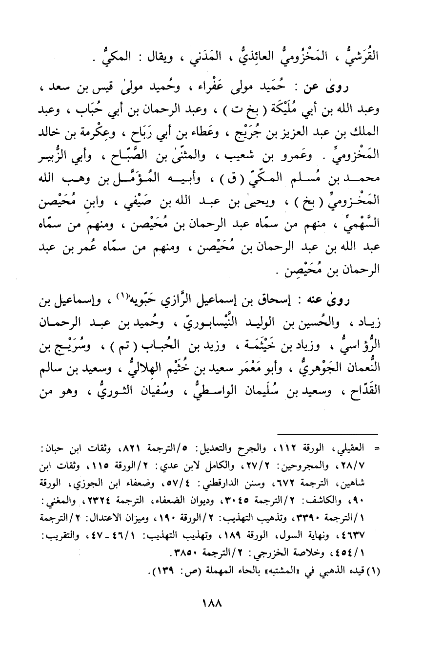= العقيلي، الورقة 112، والجرح والتعديل: 5 / الترجمة 821، وثقات ابن حبان: 7 / 28، والمجروحين: 2 / 27، والكامل لابن عدي: 2 / الورقة 115، وثقات ابن شاهين، الترجمة 672، وسنن الدارقطني: 4 / 57، وضعفاء ابن الجوزي، الورقة 90، والكاشف: 2 / الترجمة 3045، وديوان الضعفاء، الترجمة 2324، والمغني: 1 / الترجمة 3390، وتذهيب التهذيب: 2 / الورقة 190، وميزان الاعتدال: 2 / الترجمة 4637، ونهاية السول، الورقة 189، وتهذيب التهذيب: 1 / 46 - 47، والتقريب: 1 / 454، وخلاصة الخزرجي: 2 / الترجمة 3850.
