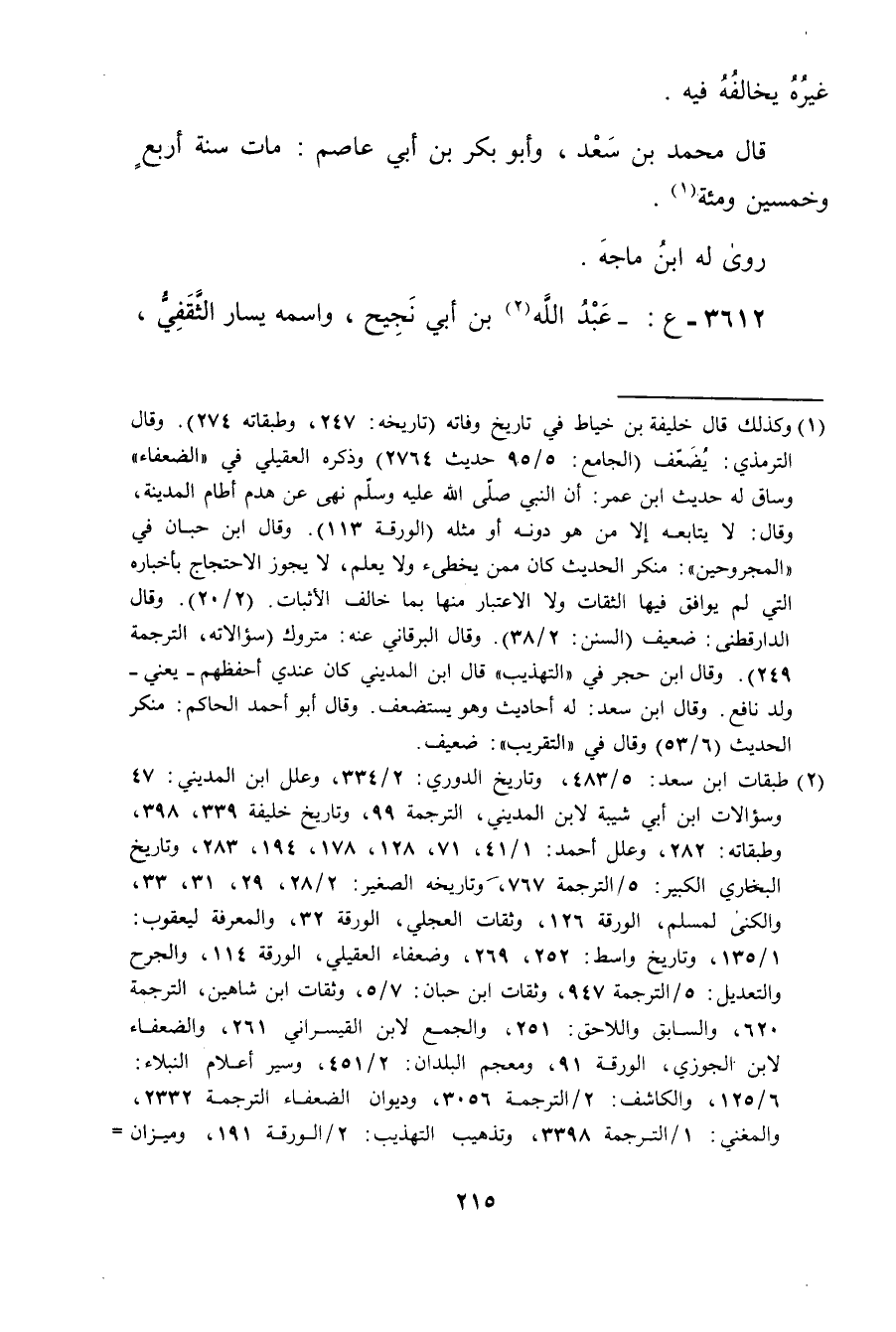 (2) طبقات ابن سعد: 5 / 483، وتاريخ الدوري: 2 / 334، وعلل ابن المديني: 47 وسؤالات ابن أَبي شَيْبَة لابن المديني، الترجمة 99، وتاريخ خليفة 339، 398، وطبقاته: 282، وعلل أحمد: 1 / 41، 71، 128، 178، 194، 283، وتاريخ البخاري الكبير: 5 / الترجمة 767، وتاريخه الصغير: 2 / 28، 29، 31، 33، والكنى لمسلم، الورقة 126، وثقات العجلي، الورقة 32، والمعرفة ليعقوب: 1 / 135، وتاريخ واسط: 252، 269، وضعفاء العقيلي، الورقة 114، والجرح والتعديل: 5 / الترجمة 947، وثقات ابن حبان: 7 / 5، وثقات ابن شاهين، الترجمة 620، والسابق واللاحق: 251، والجمع لابن القيسراني 261، والضعفاء لابن الجوزي، الورقة 91، ومعجم البلدان: 2 / 451، وسير أعلام النبلاء: 6 / 125، والكاشف: 2 / الترجمة 3056، وديوان الضعفاء الترجمة 2332، والمغني: 1 / الترجمة 3398، وتذهيب التهذيب: 2 / الورقة 191، وميزان =