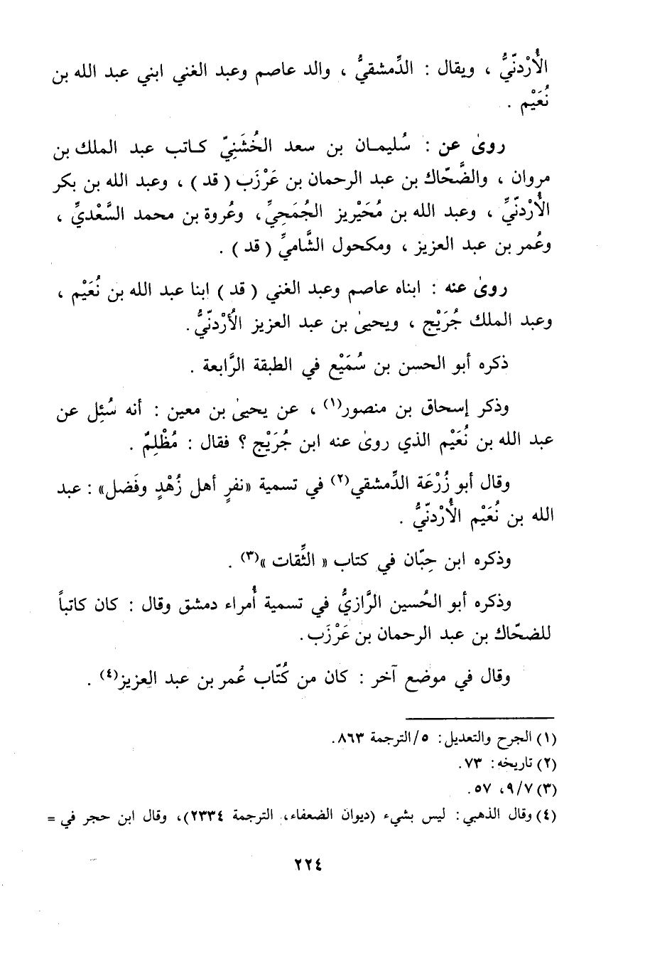 وَقَال أَبُو زُرْعَة الدمشقي (2) فِي تسمية"نفر أهل زهد وفضل": عَبْد اللَّهِ بْن نعيم الأردني.