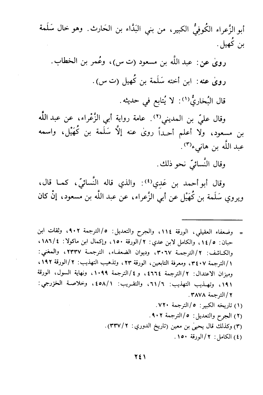 وَقَال أَبُو أَحْمَد بْن عدي (4) : والذي قاله النَّسَائي، كما قال، ويروى سلمة بْن كهيل عَن أبي الزعراء، عَنْ عَبد اللَّهِ بْن مسعود، إن كان