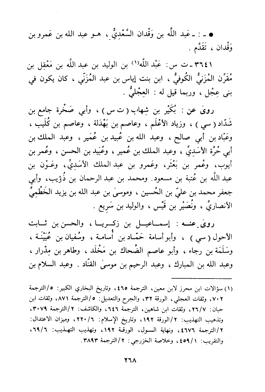 3641 - ت س: عَبد اللَّه بْن الوليد بْن عَبد اللَّهِ بْن معقل بْن مقرن المزني الكوفي (1) ، ابْن بنت إياس بْن عبد المزني، كَانَ يكون فِي بني عجل، وربما قيل لَهُ: الْعَجَلِيّ.
