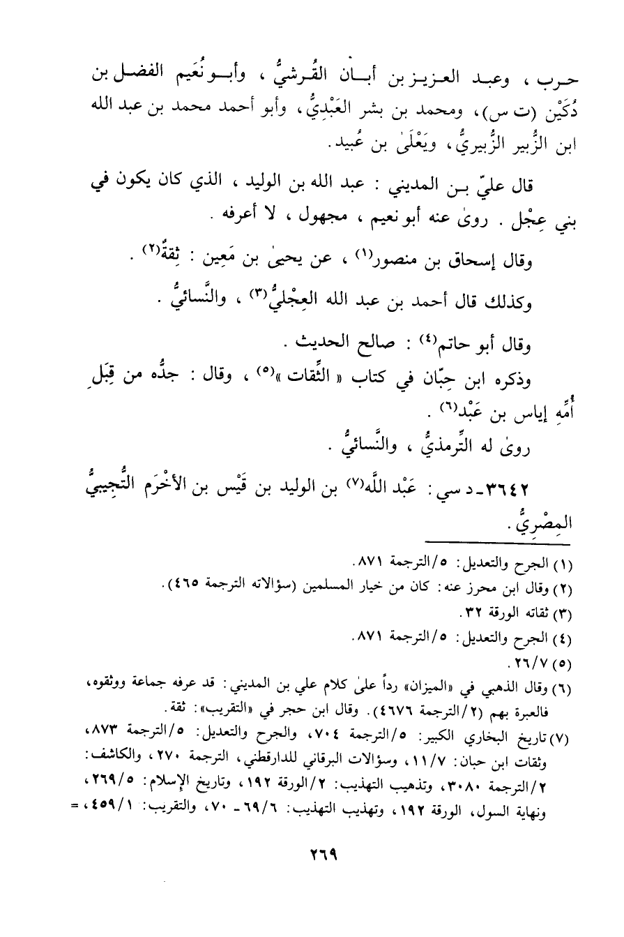 (6) وَقَال الذهبي في "الميزان"ردا على كلام علي بن المديني: قد عرفه جماعة ووثقوه، فالعبرة بهم (2 / الترجمة 4676) . وَقَال ابن حجر في "التقريب": ثقة.