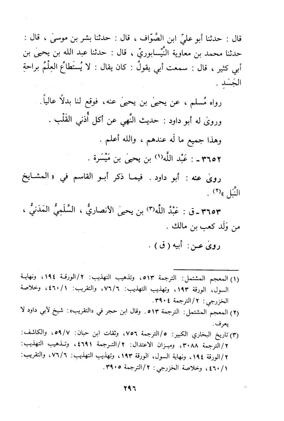 3653 - ق: عَبد اللَّهِ بن يَحْيَى الأَنْصارِيّ (3) ، السلمي المدني، من ولد كعب بْن مالك.