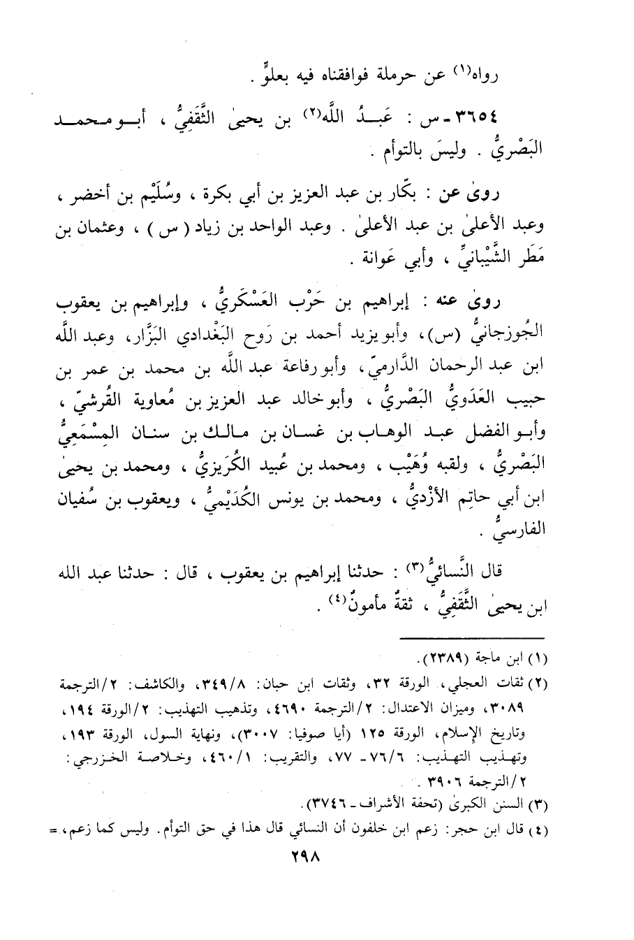 3654 - س: عَبد اللَّهِ بن يَحْيَى الثَّقَفِيّ (2) ، أَبُو مُحَمَّد البَصْرِيّ.