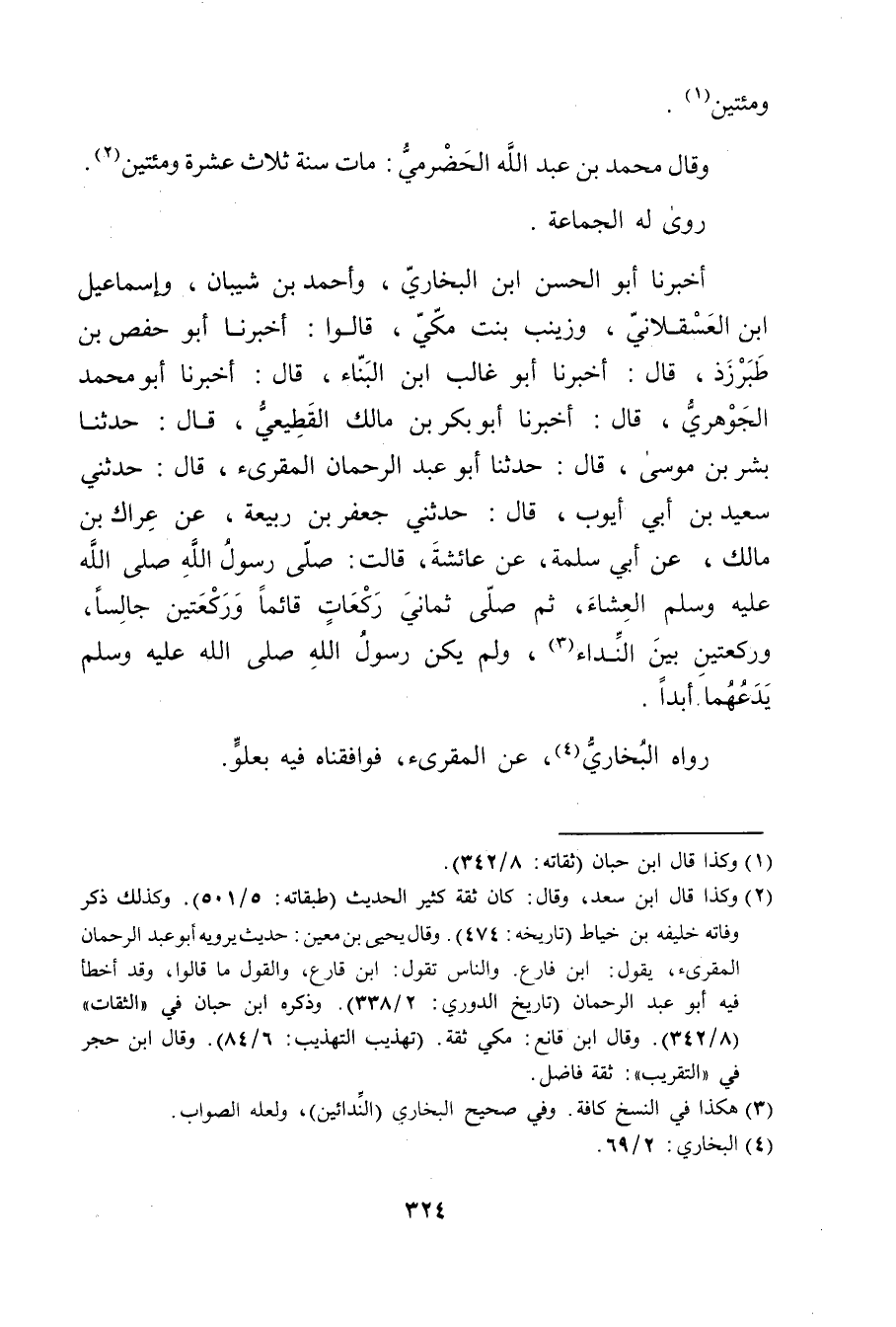(1) وكذا قال ابن حبان (ثقاته: 8 / 342) .