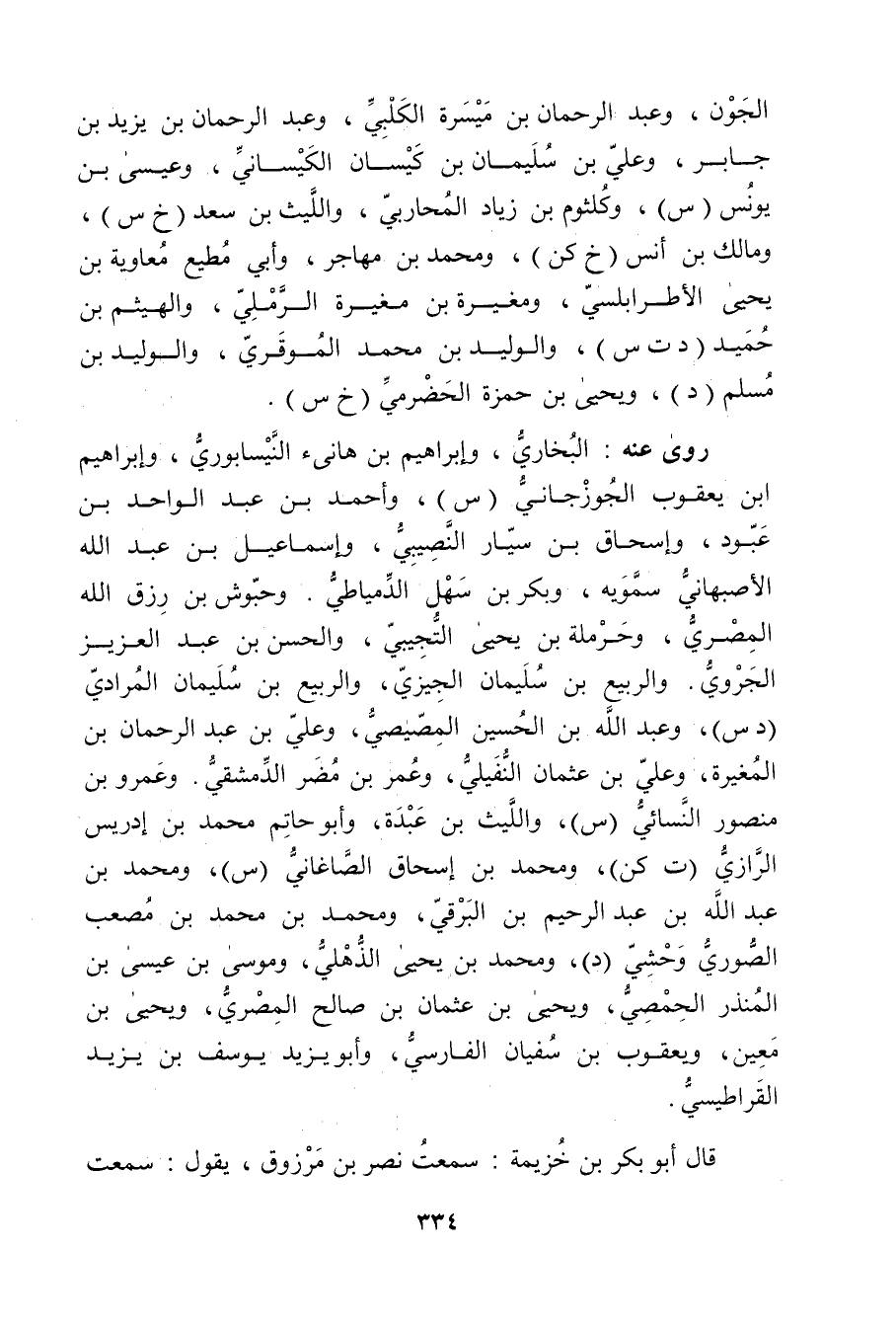 قال أَبُو بَكْرِ بْنُ خزيمة: سمعت نصر بْن مرزوق، يَقُول: سمعت