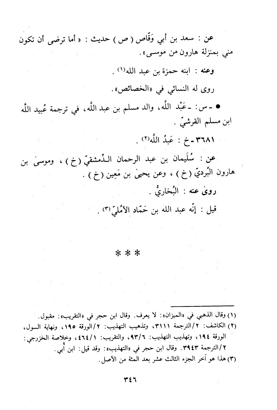 عَن: سعد بْن أَبي وقاص (ص) حديث: أما ترضى أن تكون مني بمنزلة هارون من موسى.