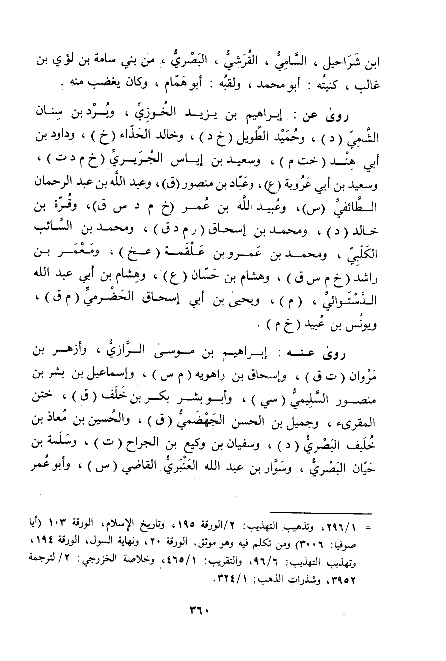 ابْن شراحيل، السامي، القرشي، البَصْرِيّ، من بني سامة بْن لؤي بْن