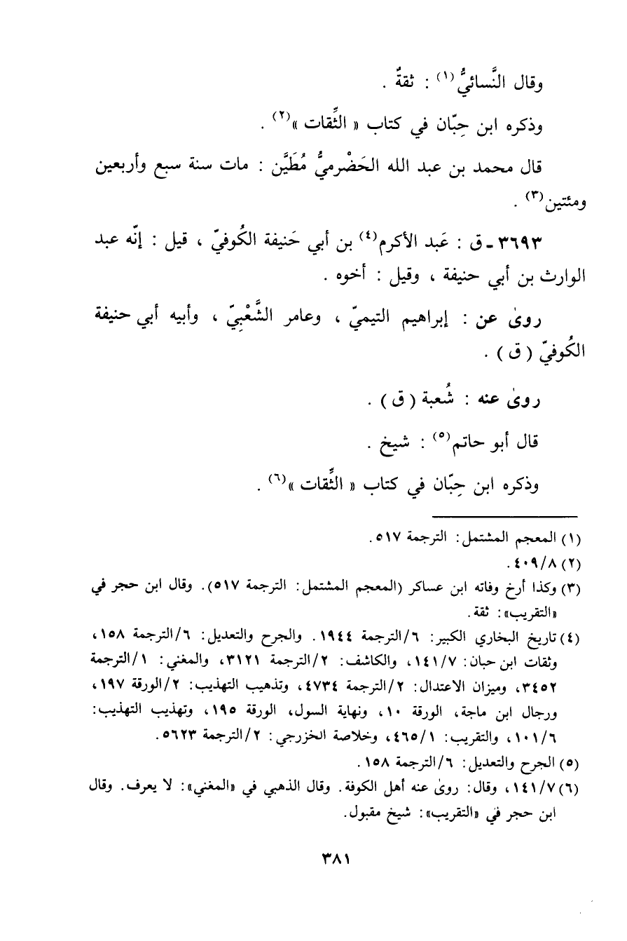3693 - ق: عبد الاكرم بن أَبي حنيفة الكوفي (4) ، قيل: إنه عبد الوارث بْن أَبي حنيفة، وقيل: أخوه.