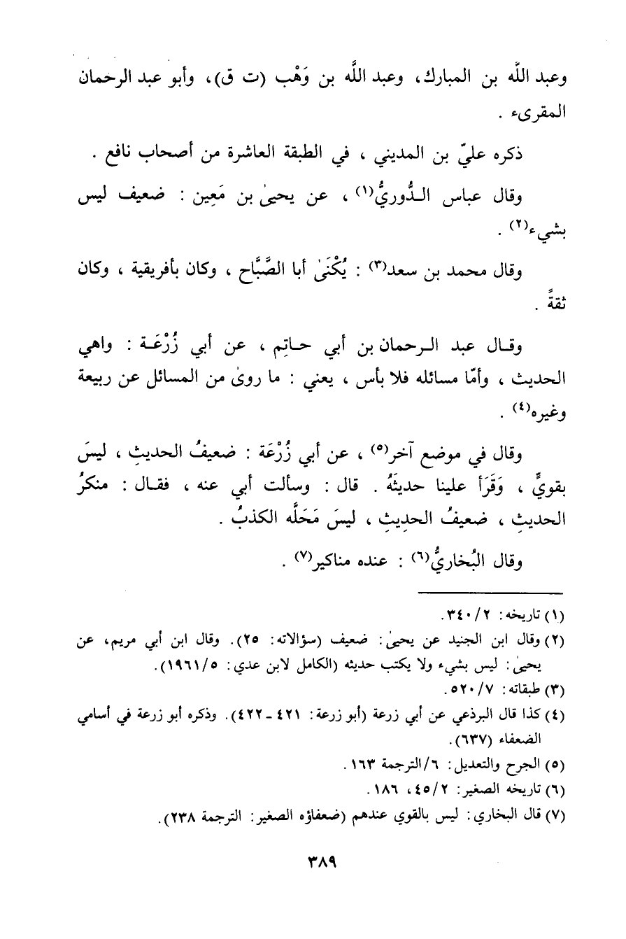 (4) كذا قال البرذعي عَن أبي زرعة (أبو زُرْعَة: 421 - 422) ، وذَكَره أبو زُرْعَة في أسامي الضعفاء (637) .