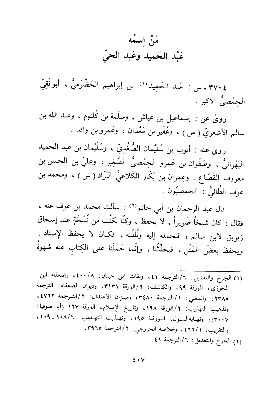 3704 - س: عبد الحميد بن إِبْرَاهِيمَ الْحَضْرَمِيّ (1) ، أَبُو تقي الحمصي الأكبر.