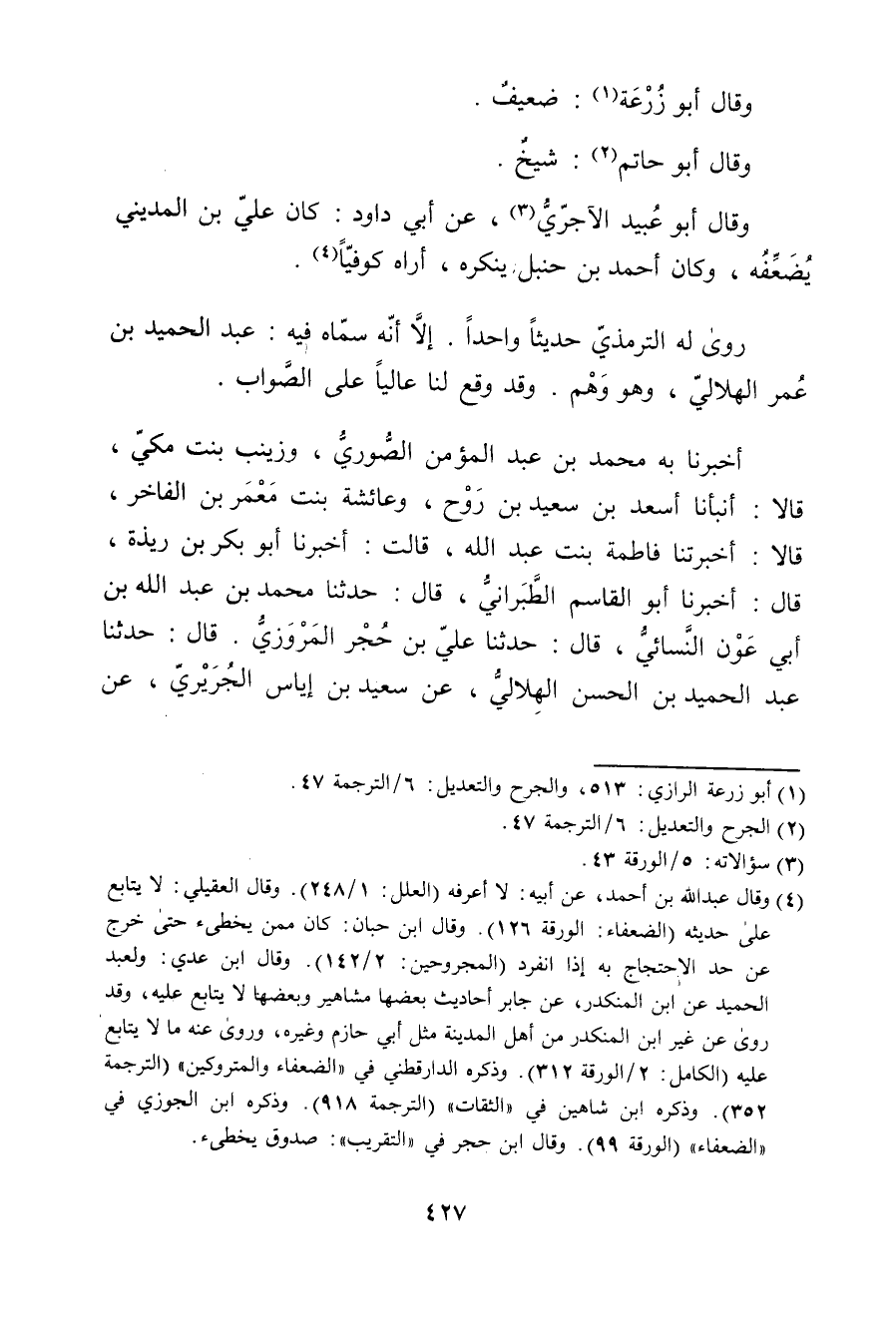 (1) أبو زُرْعَة الرازي: 513، والجرح والتعديل: 6 / الترجمة 47.