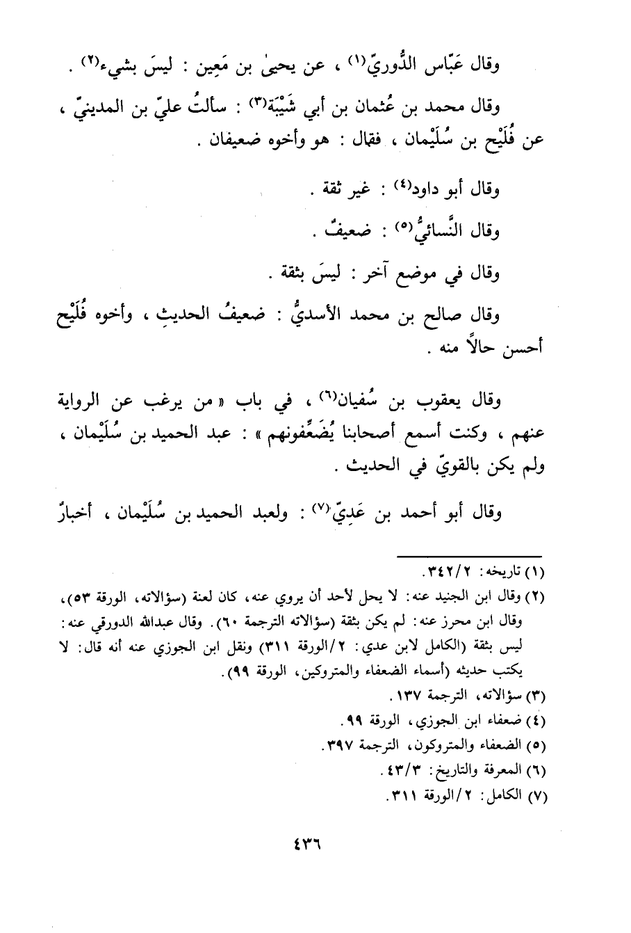 (5) الضعفاء والمتروكون، الترجمة 397.