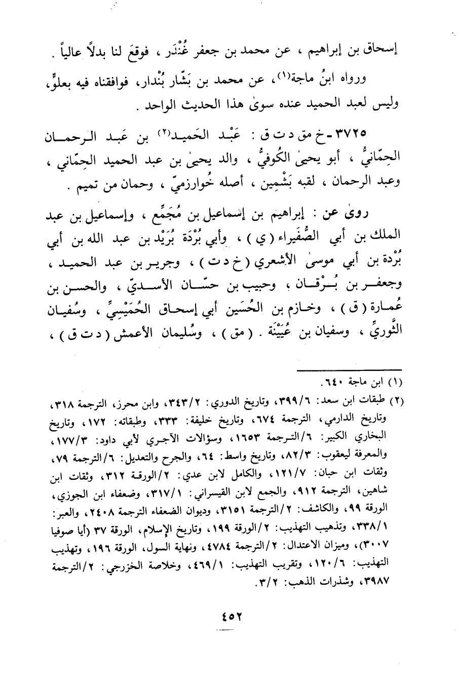 3725 - خ مق د ت ق: عبد الحميد بن عبد الرحمن الحماني (2) ، أبويحيى الكوفي، والد يحيى بن عبد الحميد الحماني، وعَبْد الرَّحْمَنِ، لقبه بشمين، أصله خوارزمي، وحمان من تميم.