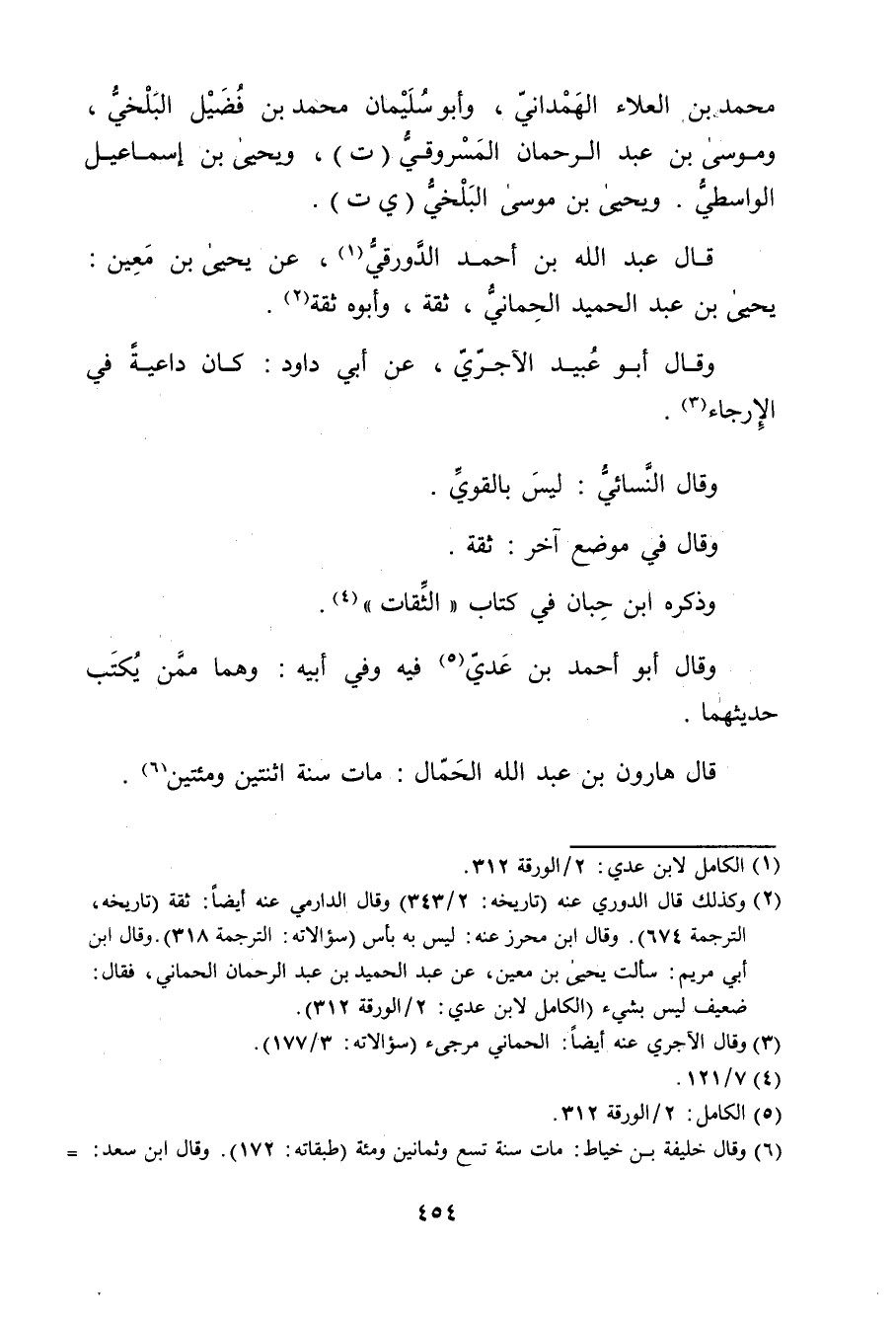 (1) الكامل لابن عدي: 2 / الورقة 312.