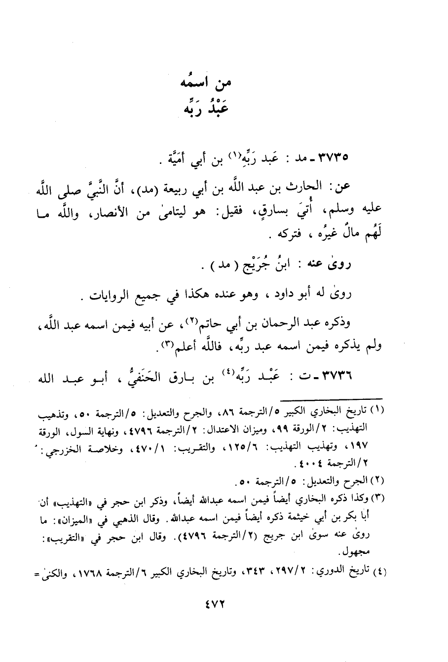 وذكره عَبْد الرَّحْمَنِ بْن أَبي حَاتِم (2) ، عَن أبيه فيمن اسمه عَبد اللَّهِ، ولم يذكره فيمن اسمه عبد ربه، فالله أعلم (3) .