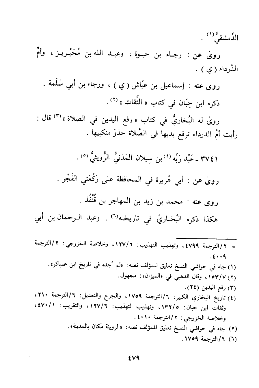 = 2 / الترجمة 4799، وتهذيب التهذيب: 6 / 127، وخلاصة الخزرجي: 2 / الترجمة 4009.