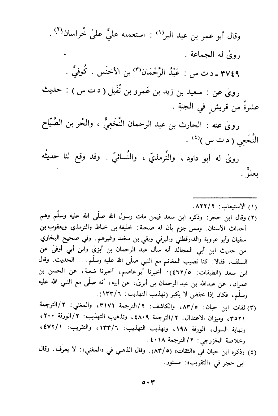 3749 - د ت س: عَبْد الرَّحْمَنِ بن الأخنس (3) . كوفي.