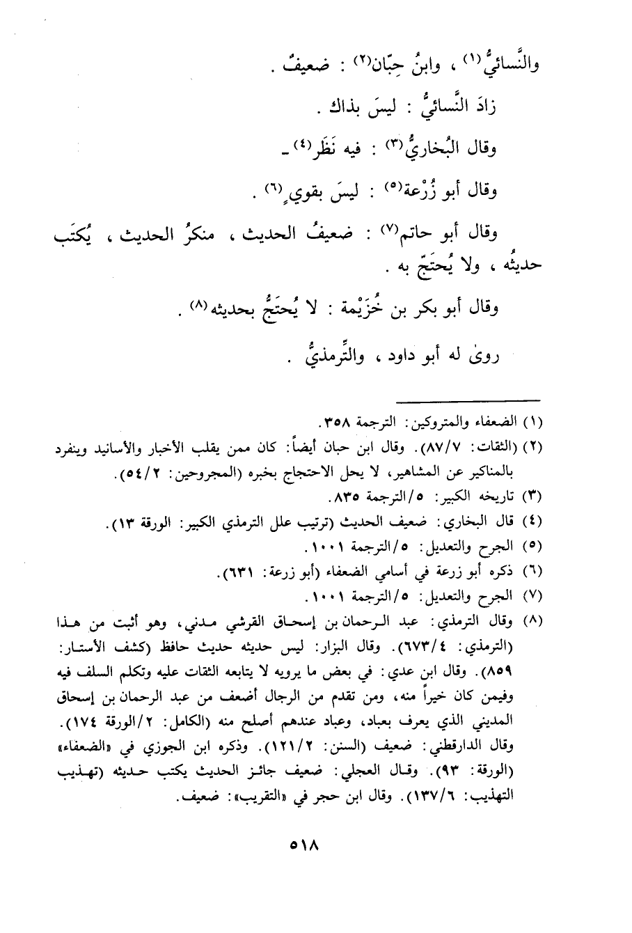 (1) الضعفاء والمتروكين: الترجمة 358.