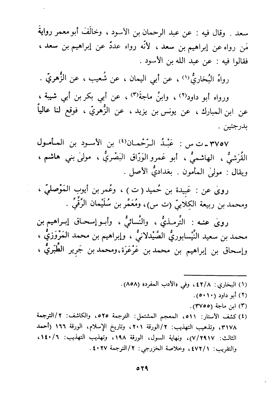 3757 - ت س: عَبْد الرَّحْمَنِ بن الأسود بن المأمول القرشي (4) ، الهاشمي، أَبُو عَمْرو الوراق البَصْرِيّ، مولى بني هاشم، ويُقال: مولى المأمون. بغدادي الأصل.
