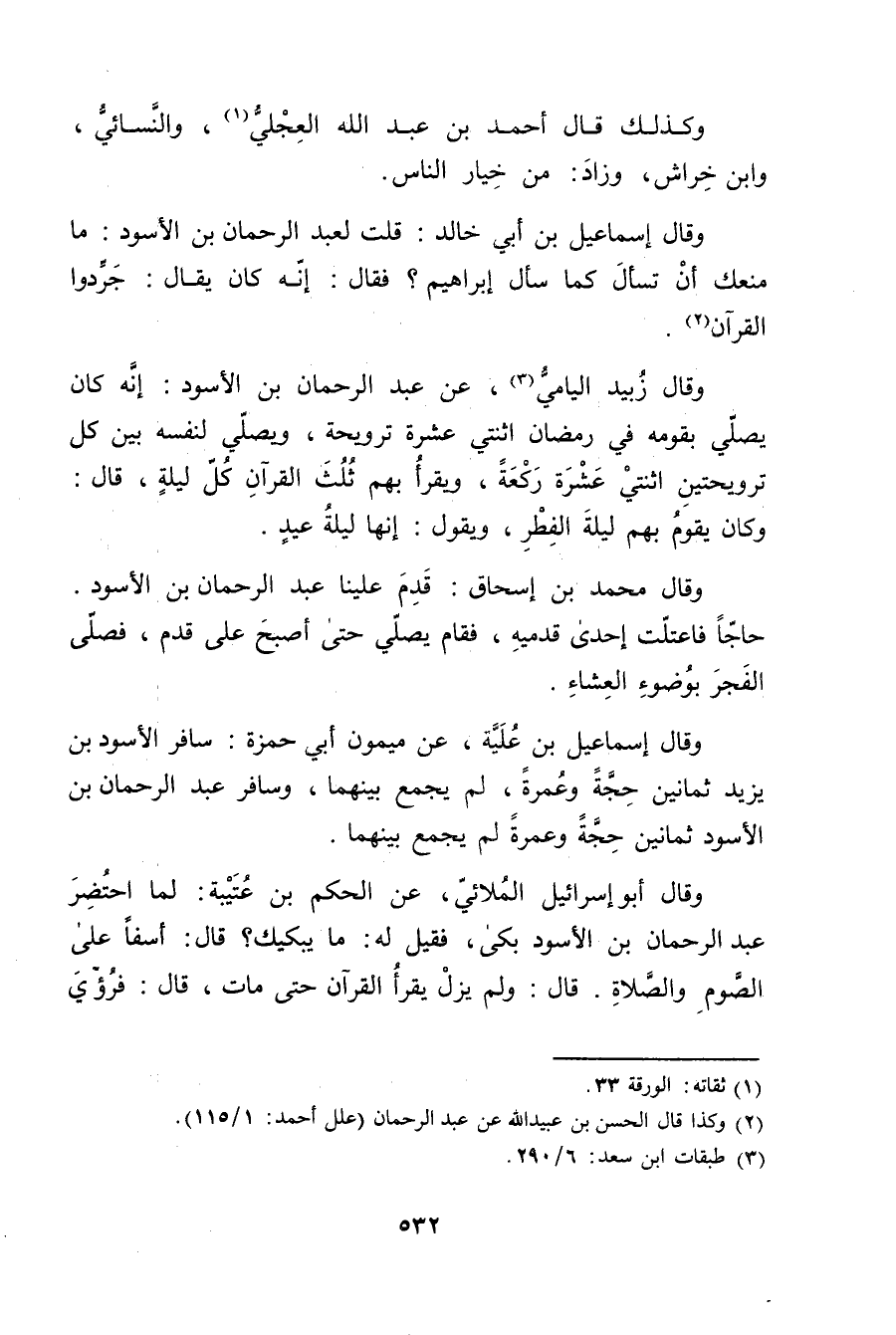 (2) وكذا قال الحسن بْن عُبَيد اللَّه عَنِ عبد الرحمن (علل أحمد: 1 / 115) .