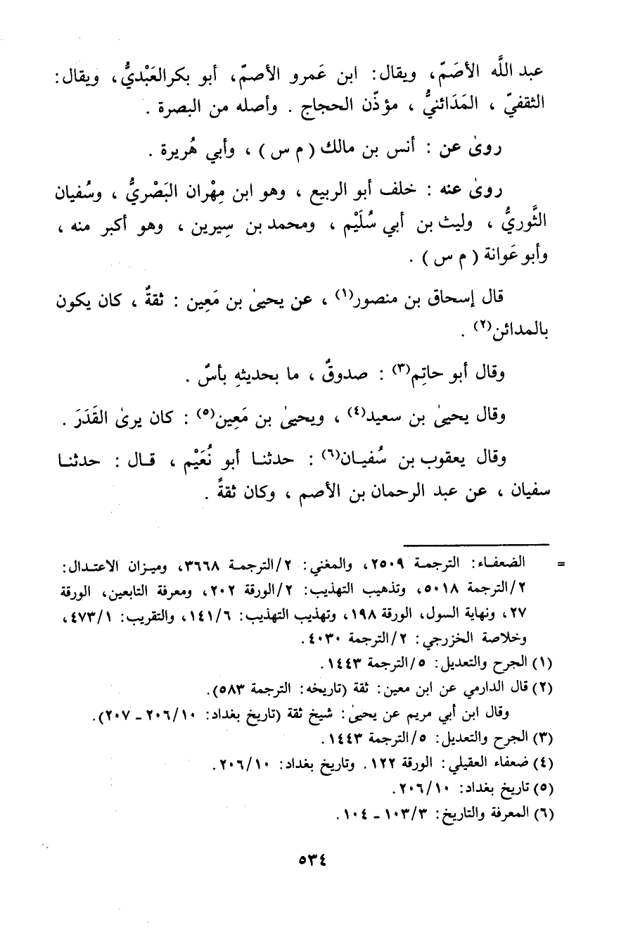 = الضعفاء: الترجمة 2509، والمغني: 2 / الترجمة 3668، وميزان الاعتدال: 2 / الترجمة 5018، وتذهيب التهذيب: 2 / الورقة 202، ومعرفة التابعين: الورقة 27، ونهاية السول، الورقة 198، وتهذيب التهذيب: 6 / 141، والتقريب: 1 / 473، وخلاصة الخزرجي: 2 / الترجمة 4030.
