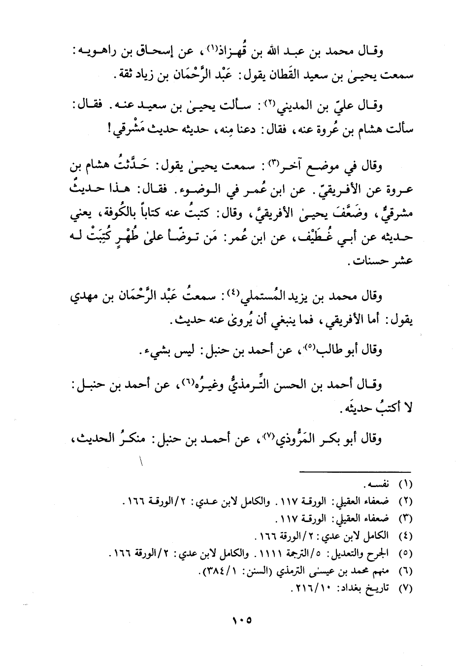 (5) الجرح والتعديل: 5 / الترجمة 1111. والكامل لابن عدي: 2 / الورقة 166.