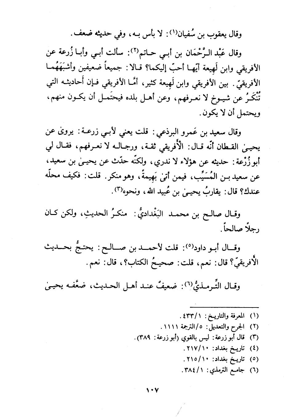 وَقَال عَبْد الرَّحْمَنِ بْن أَبي حاتم (2) : سَأَلتُ أَبِي وأبا زرعة عَنِ الإفْرِيقيّ وابن لَهِيعَة أيها أحب اليكما؟ قالا: جميعا ضعيفين وأشبههما الإفْرِيقيّ.