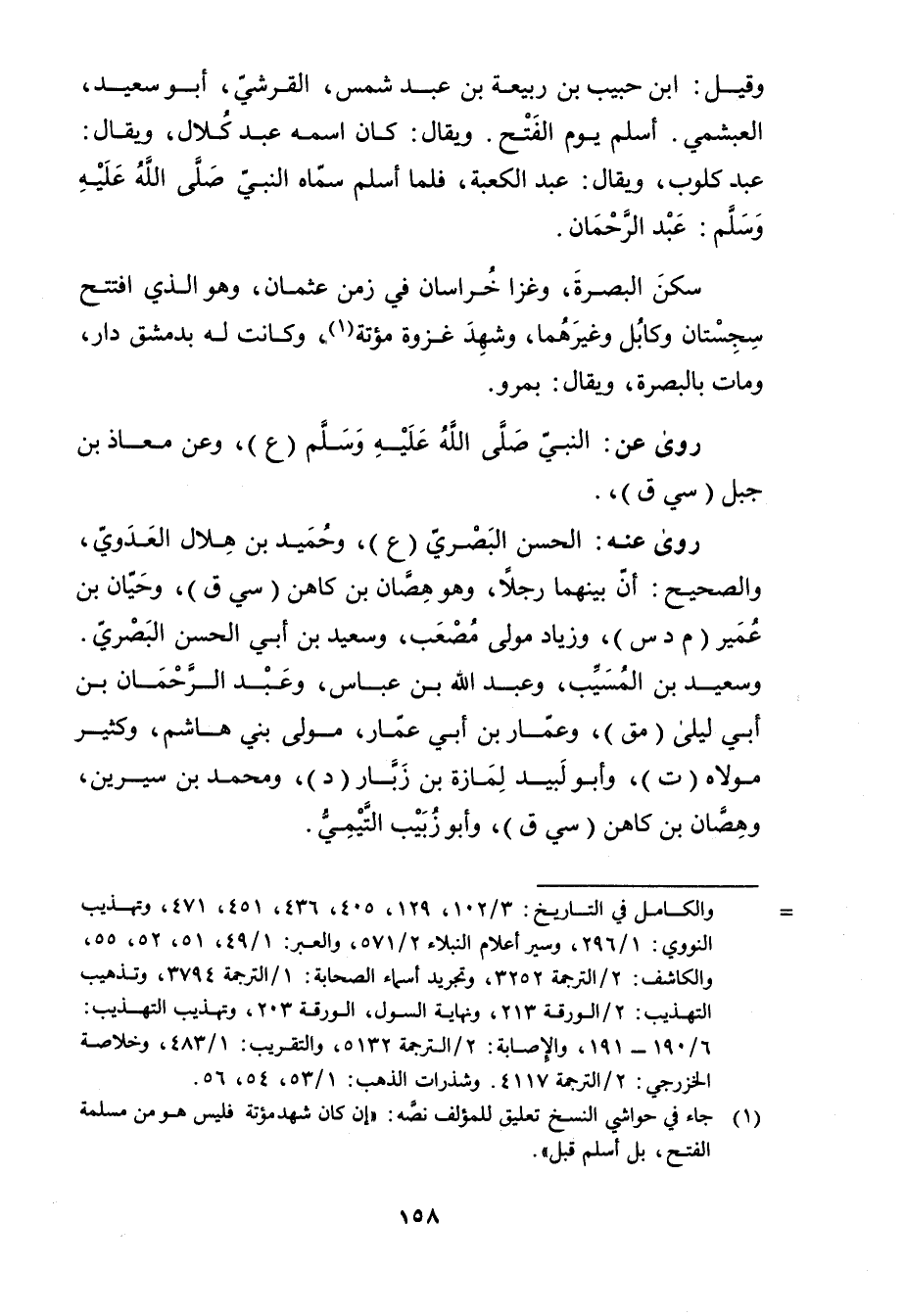 = والكامل في التاريخ: 3 / 102، 129، 405، 436، 451، 471، وتهذيب النووي: 1 / 296، وسير أعلام النبلاء 2 / 571، والعبر: 1 / 49، 51، 52، 55، والكاشف: 2 / الترجمة 3252، وتجريد أسماء الصحابة: 1 / الترجمة 3794، وتذهيب التهذيب: 2 / الورقة 213، ونهاية السول، الورقة 203، وتهذيب التهذيب: 6 / 190 - 191، والاصابة: 2 / الترجمة 5132، والتقريب: 1 / 483، وخلاصة الخزرجي: 2 / الترجمة 4117. وشذرات الذهب: 1 / 53، 54، 56.