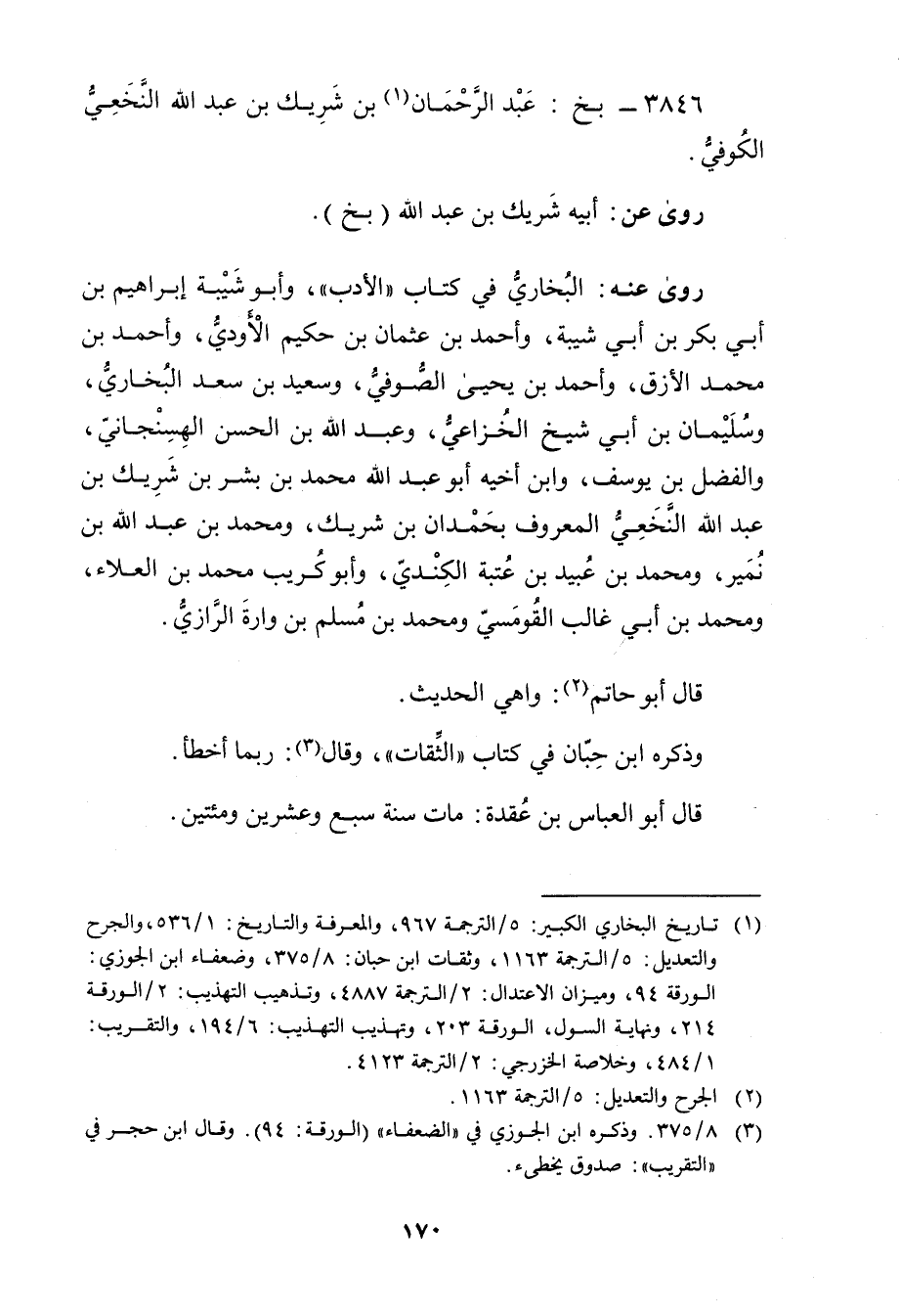 3846 - بخ: عَبْد الرَّحْمَن بن شَرِيك بن عَبد اللَّه النخعي الكوفي (1) .