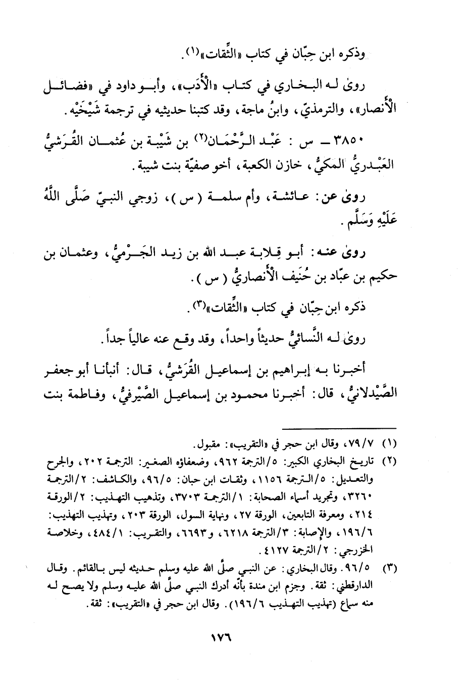 3850 - س: عَبْد الرَّحْمَن بن شَيْبَة بن عثمان القرشي العبدري المكي (2) ، خازن الكعبة، أخو صفية بنت شَيْبَة.