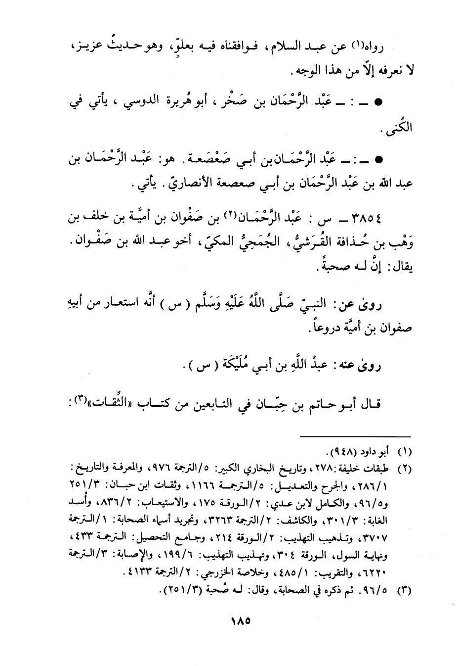 3854 - س: عَبْد الرَّحْمَن بن صفوان بن أمية بن خلف بن وهب بن حذافة القرشي (2) ، الجمحي المكي، أخو عَبد اللَّه بْن صفوان.
