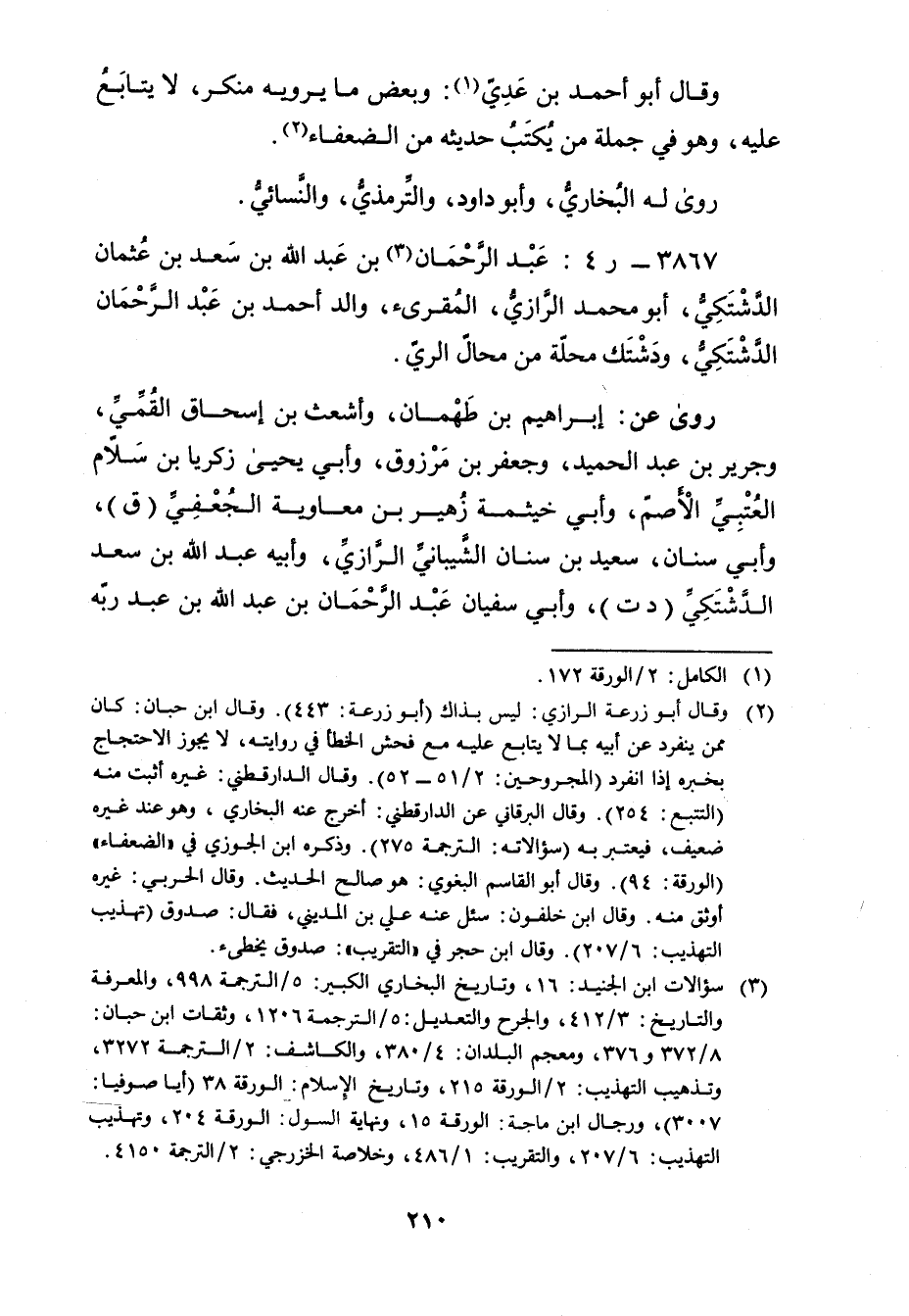 3867 - ر 4: عَبْد الرَّحْمَن بْن عَبد اللَّهِ بْن سعد بن عثمان الدشتكي (3) ، أَبُو مُحَمَّد الرازي، المقرئ، والد أَحْمَد بْن عَبْد الرَّحْمَن الدشتكي، ودشتك محلة من محال الري.