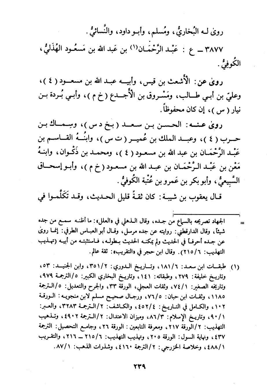 3877 - ع: عَبْد الرَّحْمَن بن عَبد اللَّهِ بن مَسْعُود الهذلي (1) ، الكوفي.