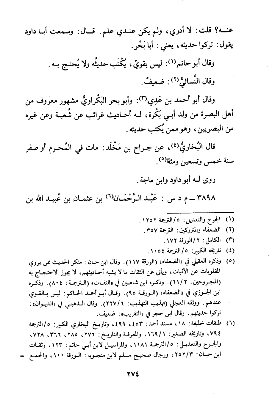 3898 - م د س: عَبْد الرَّحْمَن بن عثمان بن عُبَيد الله (6) بْن