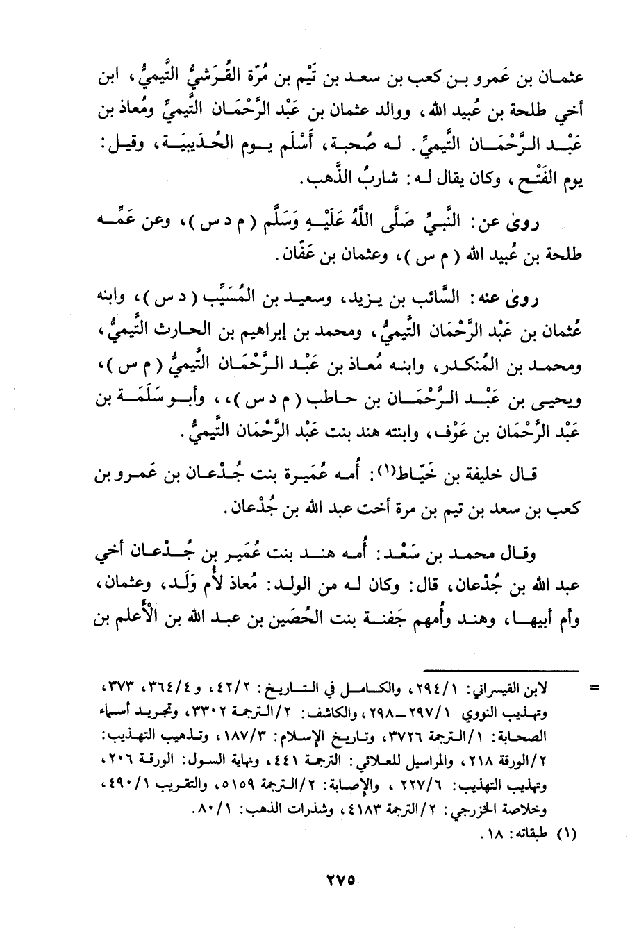 = لابن القيسراني: 1 / 294، والكامل في التاريخ: 2 / 42، و4 / 364، 373، وتهذيب النووي 1 / 297 - 298، والكاشف: 2 / الترجمة 3302، وتجريد أسماء الصحابة: 1 / الترجمة 3726، وتاريخ الاسلام: 3 / 187، وتذهيب التهذيب: 2 / الورقة 218، والمراسيل للعلائي: الترجمة 441، ونهاية السول: الورقة 206، وتهذيب التهذيب: 6 / 227، والاصابة: 2 / الترجمة 5159، والتقريب 1 / 490، وخلاصة الخزرجي: 2 / الترجمة 4183، وشذرات الذهب: 1 / 80.