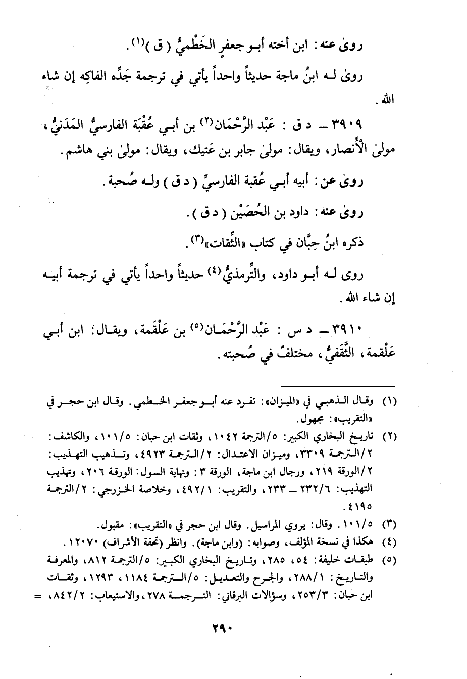(2) تاريخ البخاري الكبير: 5 / الترجمة 1042، وثقات ابن حبان: 5 / 101، والكاشف: 2 / الترجمة 3309، وميزان الاعتدال: 2 / الترجمة 4923، وتذهيب التهذيب: 2 / الورقة 219، ورجال ابن ماجة، الورقة 3: ونهاية السول: الورقة 206، وتهذيب التهذيب: 6 / 232 - 233، والتقريب: 1 / 492، وخلاصة الخزرجي: 2 / الترجمة 4195.