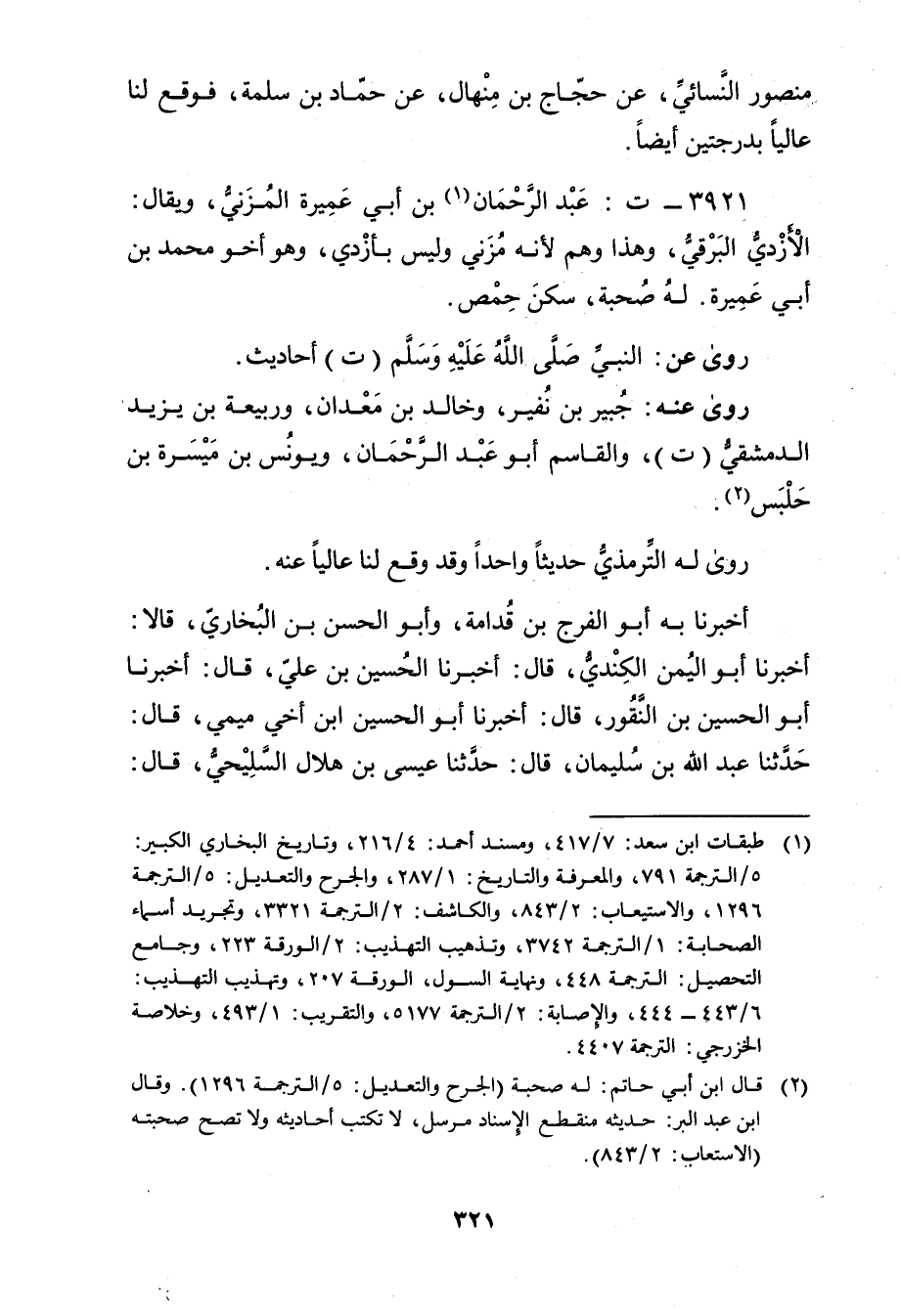 3921 - ت: عَبْد الرَّحْمَن بن أَبي عميرة المزني (1) ، ويُقال: الأزدي البرقي، وهذا وهم لأنه مزني وليس بأزدي، وهو أخو مُحَمَّد بْن أَبي عميرة. لهُ صُحبَةٌ، سكن حمص.