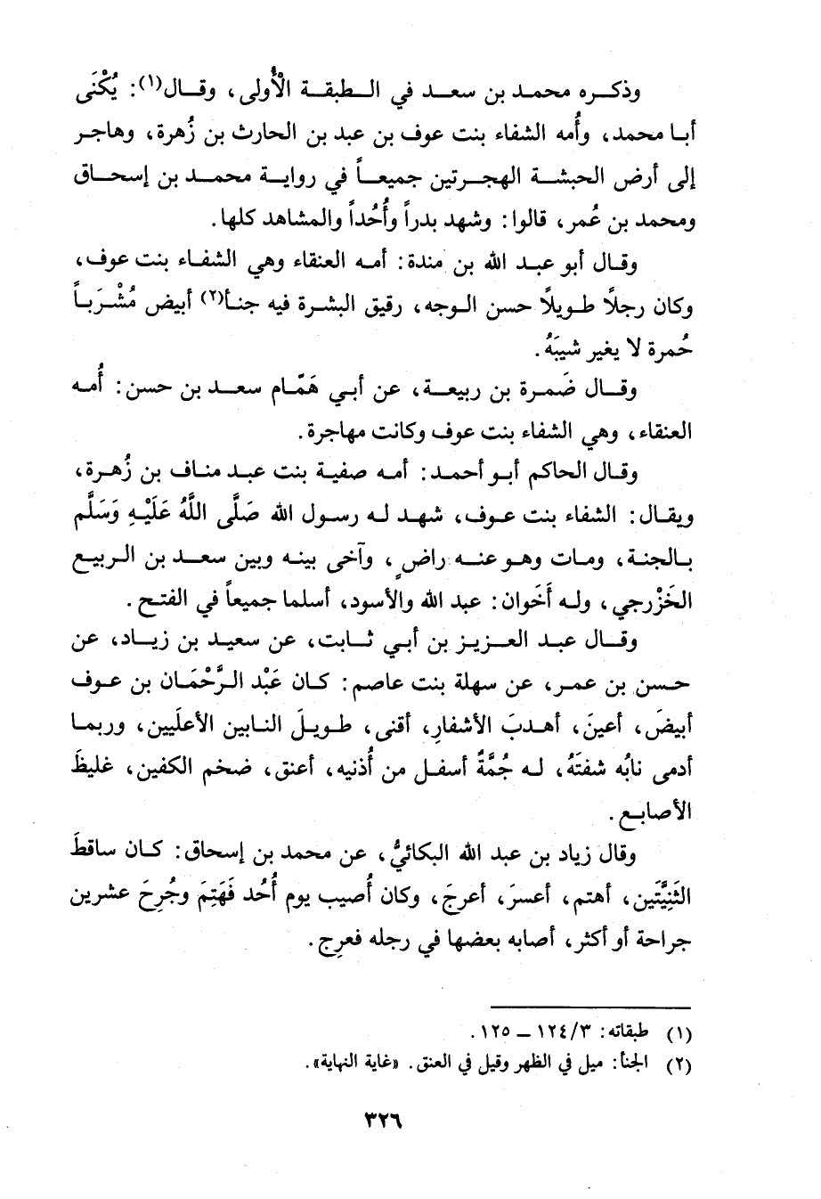 وَقَال ضمرة بْن ربيعة، عَن أَبِي همام سعد بْن حسن: أمه العنقاء، وهي الشفاء بنت عوف وكانت مهاجرة.