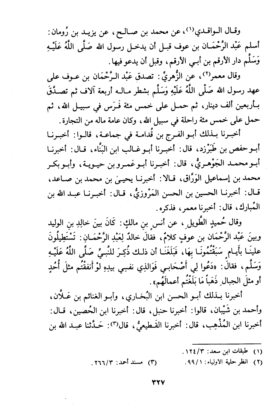 وَقَال الواقدي (1) ، عَنْ مُحَمَّد بْن صَالِح، عَنْ يَزِيد بْن رومان: أسلم عَبْد الرَّحْمَن بْن عوف قبل أَن يدخل رَسُول اللَّه صَلَّى اللَّهُ عَلَيْهِ وسَلَّمَ دار الأَرقم بْن أَبي الأَرقم، وقبل أن يدعو فيها.