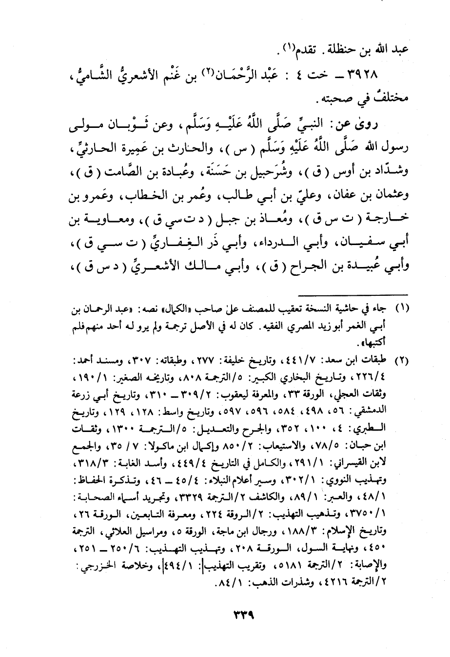 3928 - خت 4: عَبْد الرَّحْمَن بن غنم الأشعري الشامي (2) ، مختلف فِي صحبته.