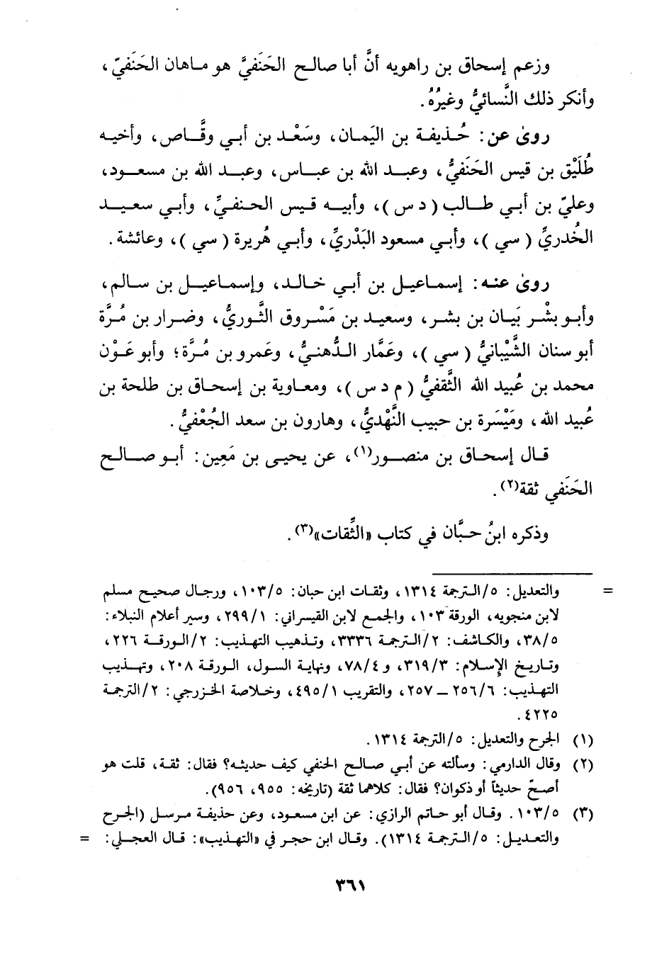 = والتعديل: 5 / الترجمة 1314، وثقات ابن حبان: 5 / 103، ورجال صحيح مسلم لابن منجويه، الورقة 103، والجمع لابن القيسراني: 1 / 299، وسير أعلام النبلاء: 5 / 38، والكاشف: 2 / الترجمة 3336، وتذهيب التهذيب: 2 / الورقة 226، وتاريخ الاسلام: 3 / 319، و4 / 78، ونهاية السول، الورقة 208، وتهذيب التهذيب: 6 / 256 - 257، والتقريب 1 / 495، وخلاصة الخزرجي: 2 / الترجمة 4225.