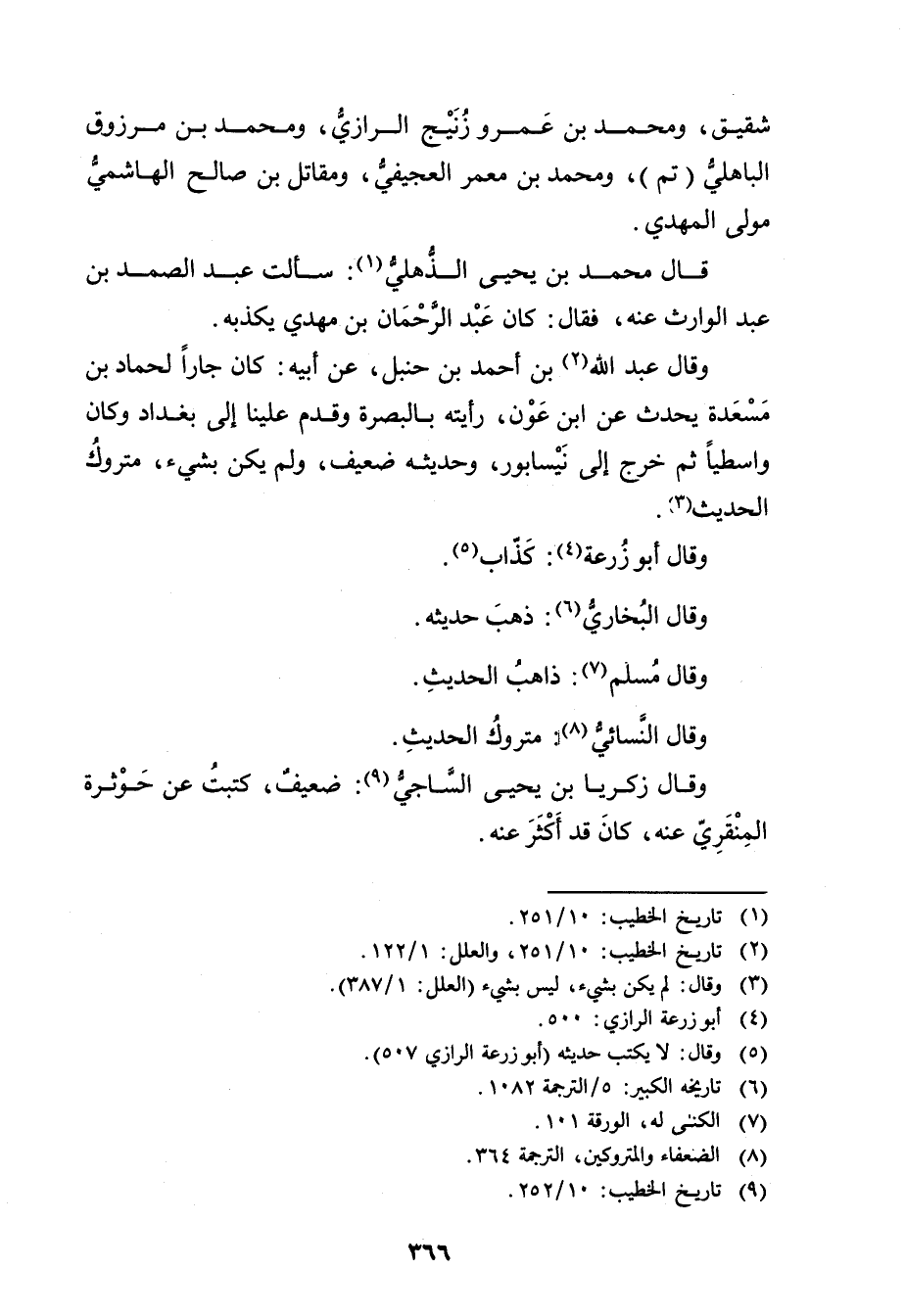 (8) الضعفاء والمتروكين، الترجمة 364.